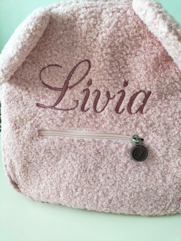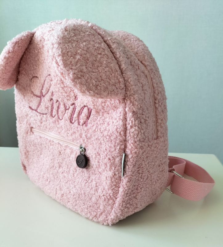 Rugzakje Teddystof roze met geborduurde naam